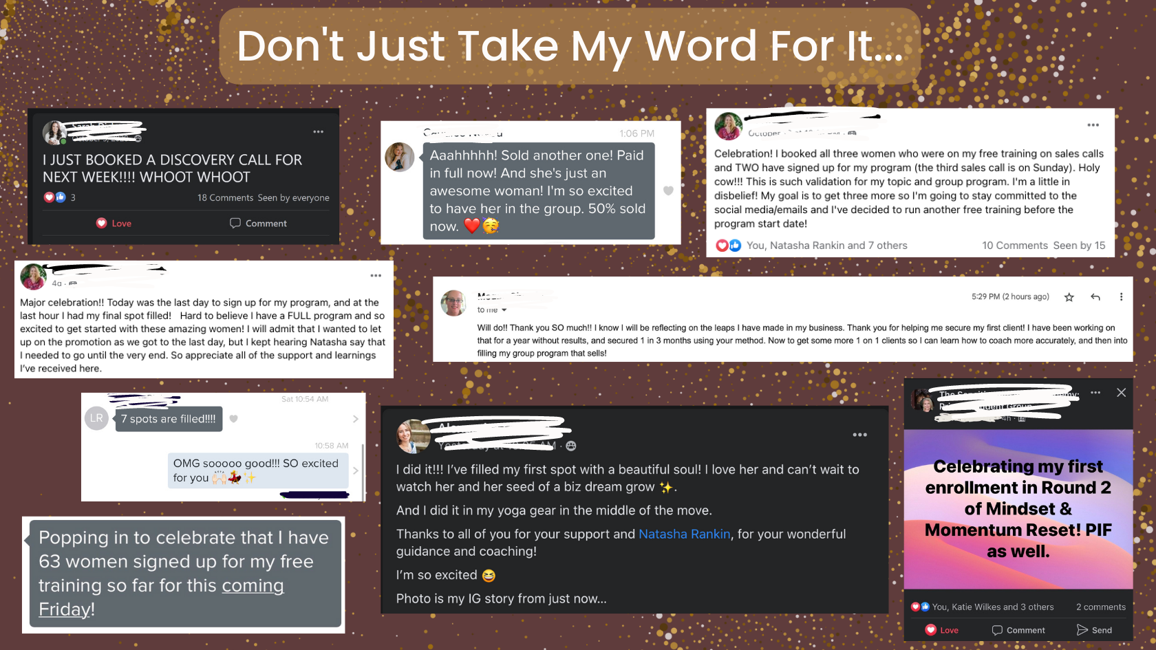 - Copy “glow ups” - weekly via loom 🌟 This is worth the entire investment in the program TBH. I’ll review your offer, sales system, and promo content & give you direct feedback via loom on how to “glow it up” so it sounds like you, but better